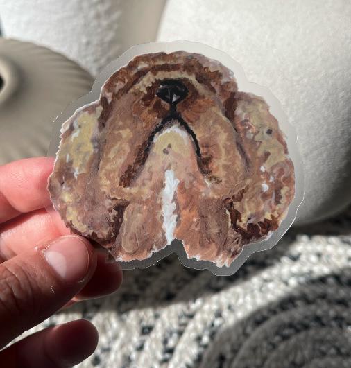 This 3x3 inch clear sticker shows a charming nose-up dog painting and it's made from waterproof vinyl for long-lasting use. It’s great for adding a playful and stylish touch to laptops, water bottles, or car windows, keeping your favorite pet close no matter where you go.