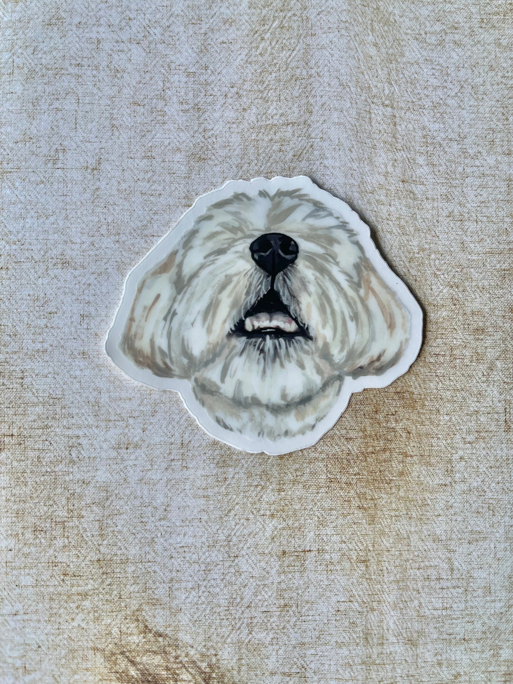 This 3x3 inch clear sticker shows a charming nose-up dog painting and it's made from waterproof vinyl for long-lasting use. It’s great for adding a playful and stylish touch to laptops, water bottles, or car windows, keeping your favorite pet close no matter where you go.