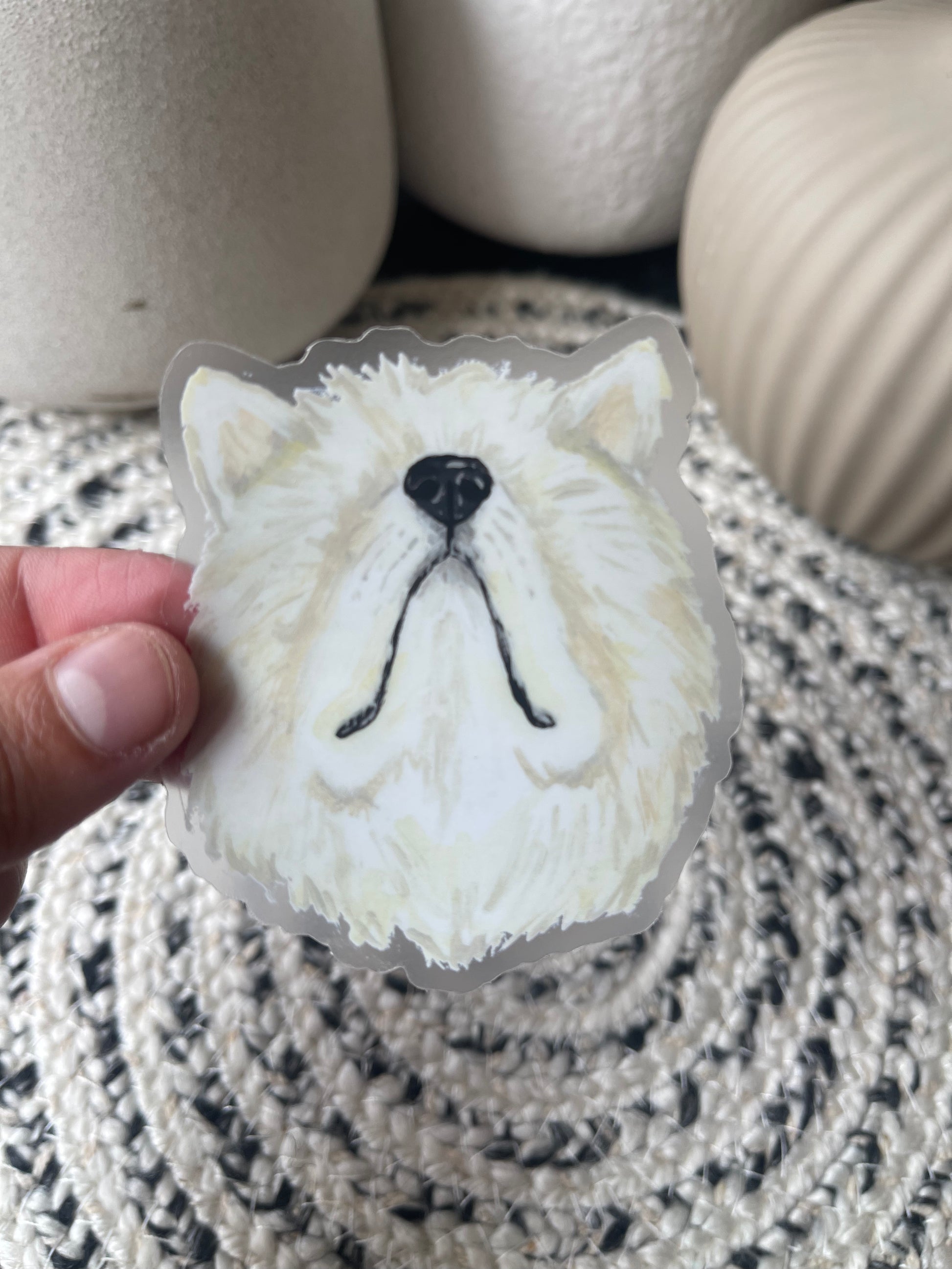 This 3x3 inch clear sticker shows a charming nose-up dog painting and it's made from waterproof vinyl for long-lasting use. It’s great for adding a playful and stylish touch to laptops, water bottles, or car windows, keeping your favorite pet close no matter where you go.