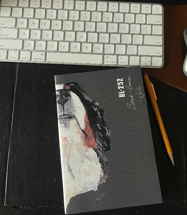 This 100% handmade Dog Notebook features our signature nose-up dog art printed on a quality linen-finish cover. Compact and durable, it includes 68 blank pages with saddle stitch binding—ideal for journaling, sketching, or quick notes wherever you go. Stylish and small, it’s the perfect way to keep your dog close even when you’re apart.